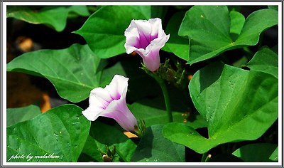 대수롭게 생각을 안 했지만.. 장모님께서 이르시기를 고구마꽃 이라고 말씀하십니다. 신기하여 가까이 가보니 연분홍,보라