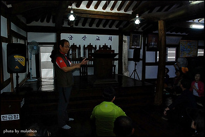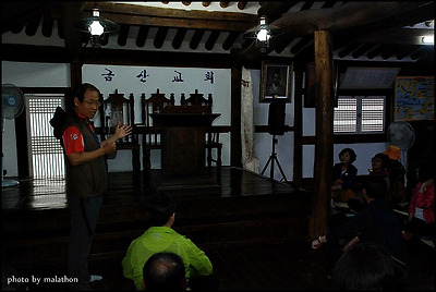 회원님들께 이곳 금산교회 유래에 대하여 설명하는