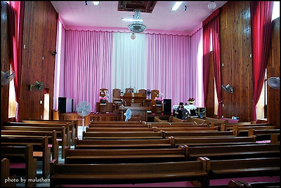 정서에 맞지 않다고 남자와 여자 예배 좌석에 커텐이 쳐 있어