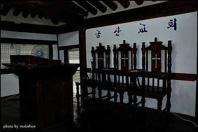 하면서 마음의 전율을 흔들 수 가 있는지요.~~바라 보건데... 한국의 전통양식과 서양식 금산교회의 특징을 조화