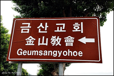 전북 김제시 금산교회 입구를 안내하는 이정표...↑
