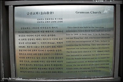 이곳 금산교회의 역사를 설명하고 있습니다.^^~