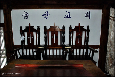 금산교회 현재도 청결히 깨끗하게 보존되어 있는 제단..