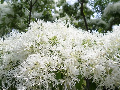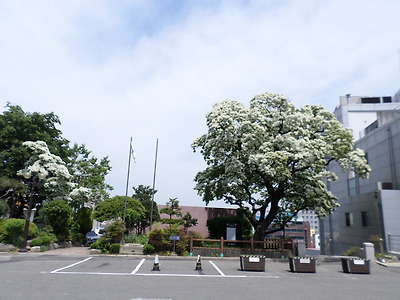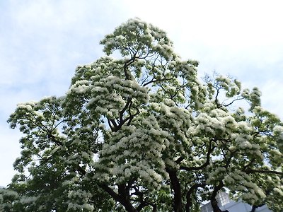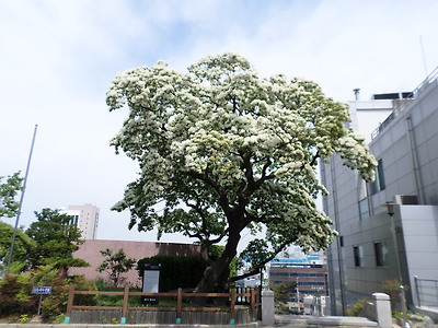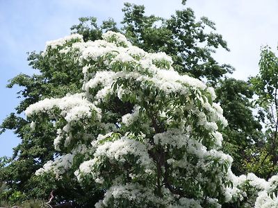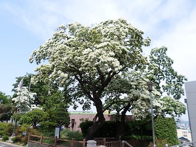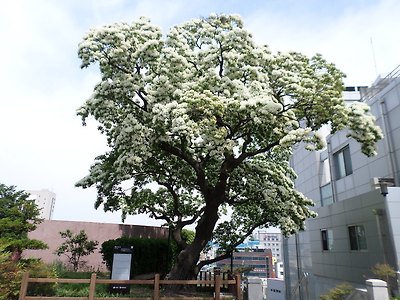 5∼6월에 피는 향기 높은 흰빛 꽃은 파란 잎이 보이지 않을 정도로 전 수관을 덮어서 여름철에 눈이 온 것 같은 착각을 준다.