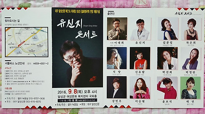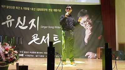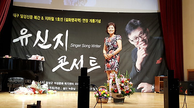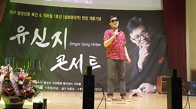 ♣ 2016.9.8.대구 달성군 여성문화복지센터 에서 지하철 1호선 (설화명곡역) 연장 개통 기념으로 70년대 인기가수 유신지 콘서트 겸 신곡 작곡발표회가 대구MBC 이대희 아나운서 사회로 성대히 거행 되었습니다.