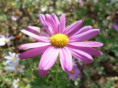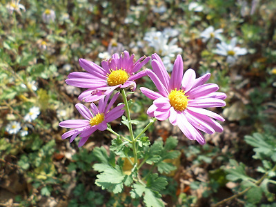 분홍침엽구절초의 특징은 가느다란 꽃잎이 길쭉하며 시간이 지남에 따라 시계방향으로 꽃잎이 오무라듭니다.