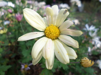 *흰색 구절초 꽃에 노란색 공작초 화분으로 2차 수정하여,씨앗을 지난해 봄에 심어서 연노란색 구절조가 탄생 했습니다. 연노란색 구절초의 특징은 향기가 있으며 향기가 은은하게 풍깁니다.