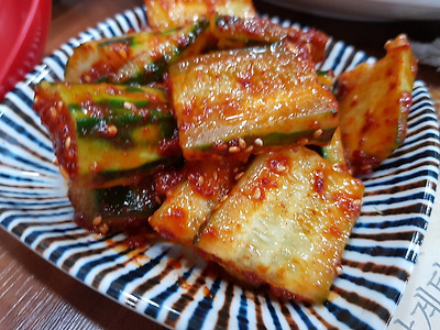 기본반찬은 딱 2가지 깍뚜기, 오이무침 입니다.