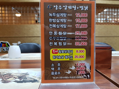 5.장수삼계탕.찜닭 메뉴판: