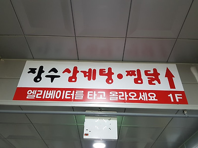 엘리베이터를 타고 1층으로 올라오시면 장수삼계탕.찜닭이 있습니다.