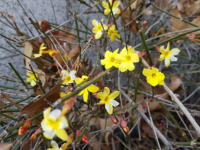 영춘화는 물푸레나무과 낙엽활엽 소교목 추위에 강하나 양지에서만 꽃이 핀다.
