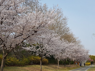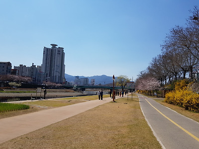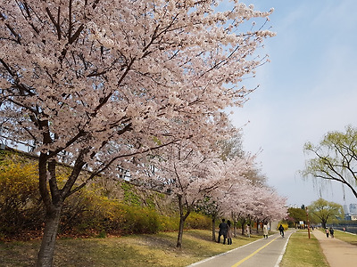 16. 신천에는 벚꽃도 흐드러지게 피어 있었어요.