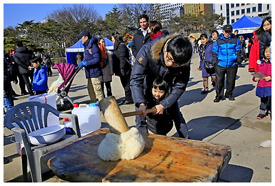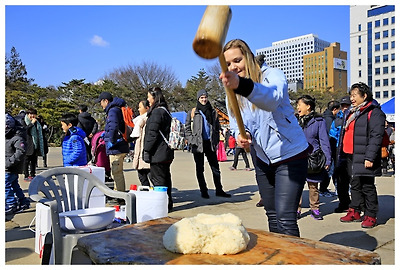 떡매치기는 외국인들에게도 인기가 있었다.