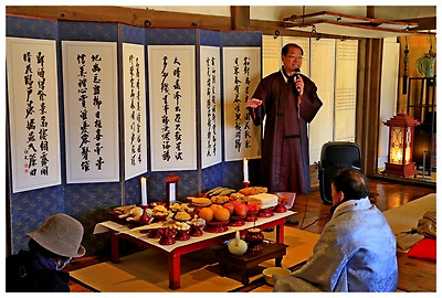 젯상 해설 코너에는 어른들이 진지하게 해설을 듣고 있다.