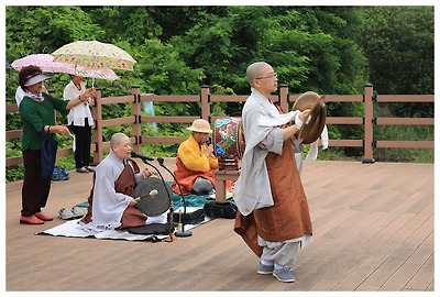 방생법회장에서 울려 퍼지는 바라, 징, 법고의 울림과