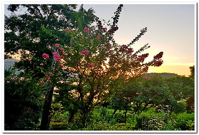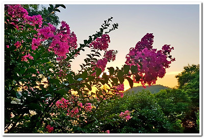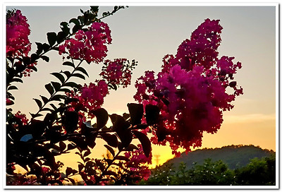저녁노을을 배경으로 카메라에 배롱꽃을 담아 본다.
