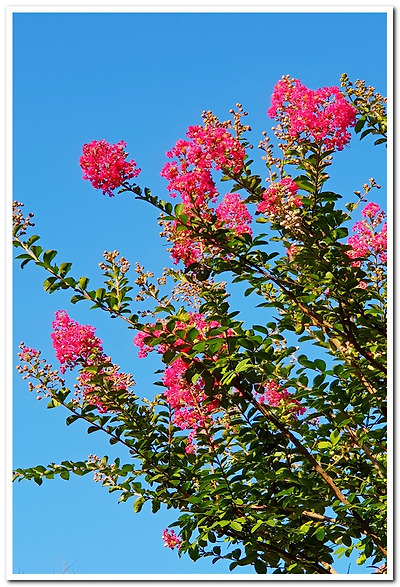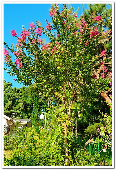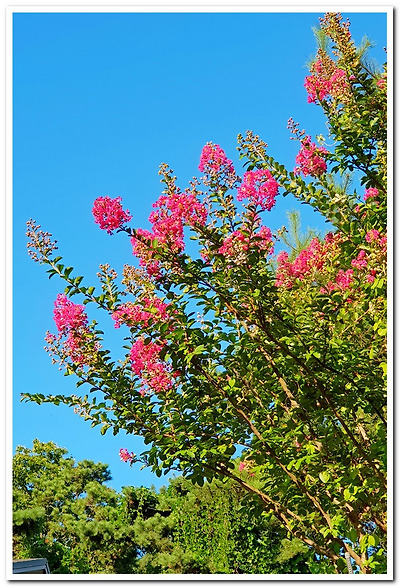 파란 하늘과 불타는 배롱꽃이 참 잘 어울린다.