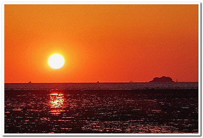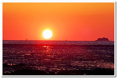 장화리 못미쳐서 해를 보니 수평선으로 떨어 질 듯 하다.