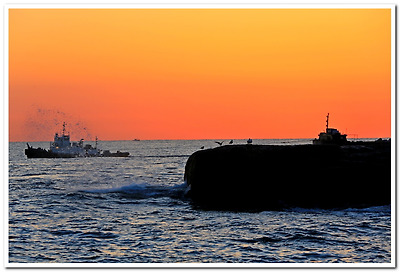 갈매기들도 뜨는 해를 맞으려는 듯이 넓은 바위에서 부지런히 날개짓을 한다.