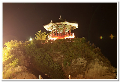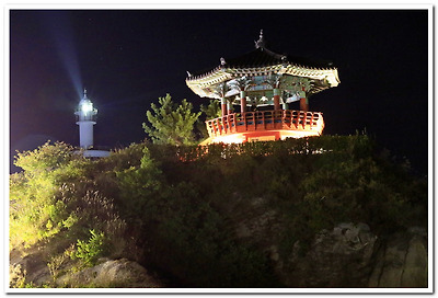 동명항의 심볼인 영금정이 조명등에 온 몸이 고스란히 들어나 있고