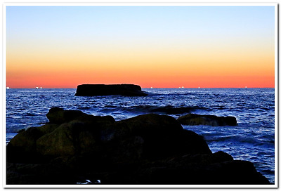 저멀리 수평선에 보이는 하얀 점은 고기잡이 어선들의 불빛인 듯 하다.