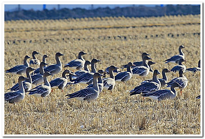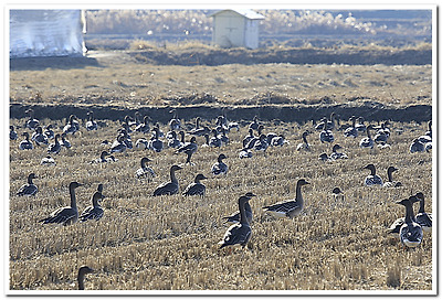 기러기들은 추수가 끝난 논에 내려앉아