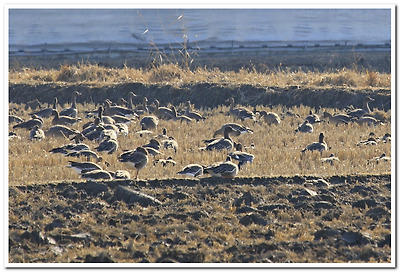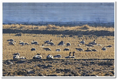 기러기들이 논바닥에 엎드려 쉬고 있다.