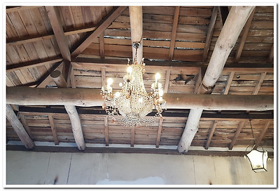 천정 나무판 사이로 지붕의 스레트가 보이는데