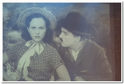 스크린에서는 챨리 체플린이 주연한 오래된 영화가 계속 상영된다.