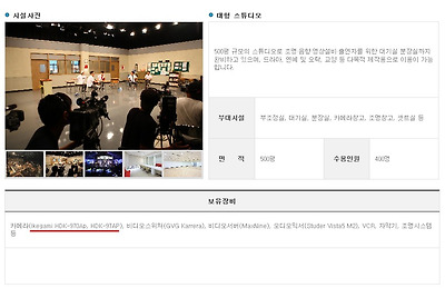 ▴빛마루 방송지원센터 대형(500평) 스튜디오 설비 소개. 이케가미 ‘HDK-790EXiii’와 ‘79EXiii’가 아닌 ‘HDK-970AP’와 ‘97AP’를 갖췄음을 확인할 수 있다. (사진: 빛마루 홈페이지)