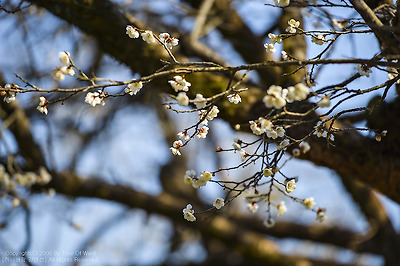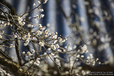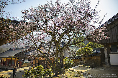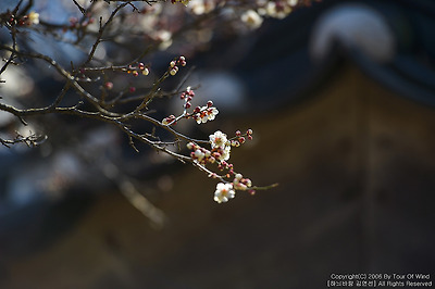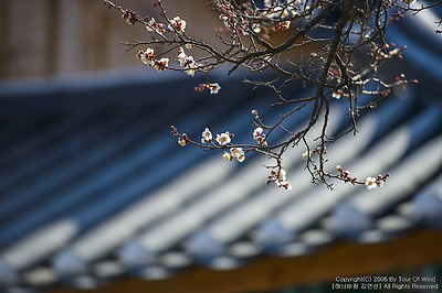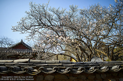 200년이 넘은 매화 나무들 꽃을 피우고 있습니다.