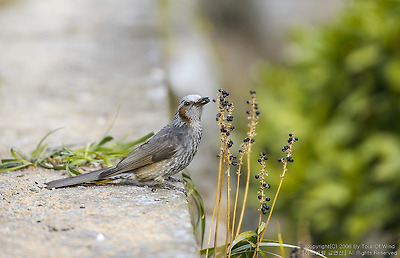 맥문동 열매를 먹으러 새가 날아와 앉았습니다