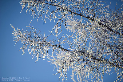 나무는 상고대로 뒤덮혀 하얀 설국이 되었습니다.