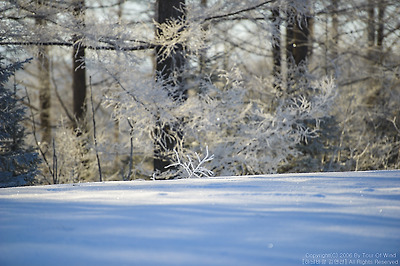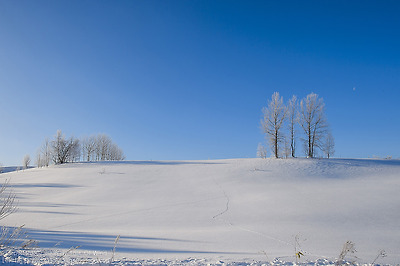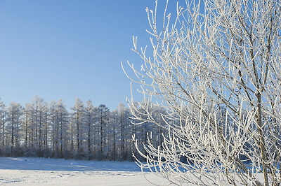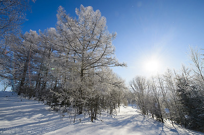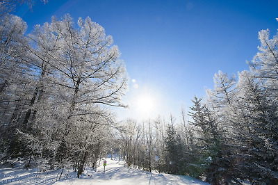 눈밭 한가운데 나뭇가지도 눈꽃으로 다시 태어나는 아침,