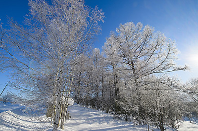 키 큰 나무들도 상고대로 반짝반짝,