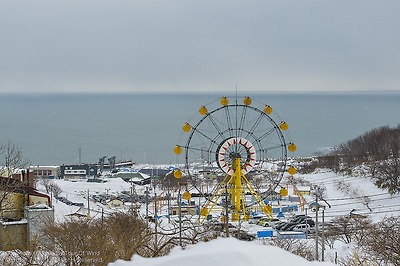 눈이 점점 더 내리던 오타루 슈쿠츠 전망대입니다.