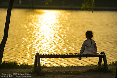 강가에 혼자 앉은 아이는 무슨 생각을 하고 있을까요?
