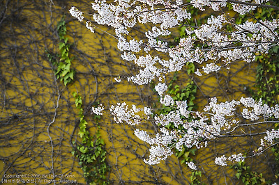 담쟁이 덩쿨과 어우러진 벚꽃을 담아봅니다.