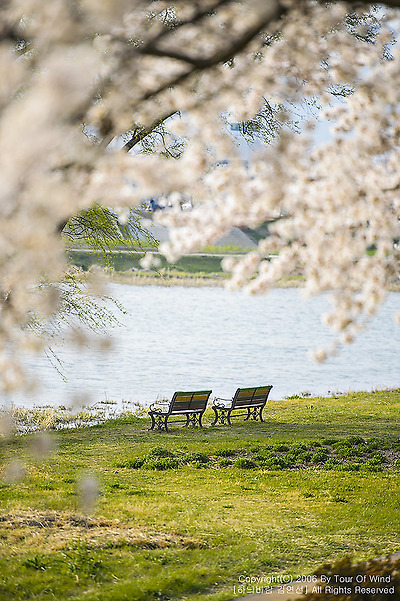 강가의 벤치도 그대로 그림이 되어주는 봄입니다.