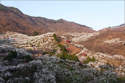 섬진강의 물길도 매화꽃 너머로 모습을 드러내고 매실농원의 풍경이