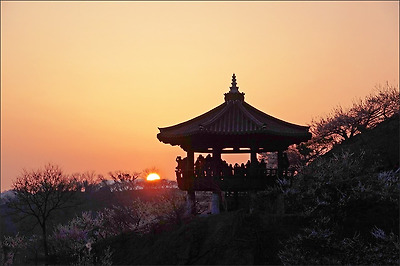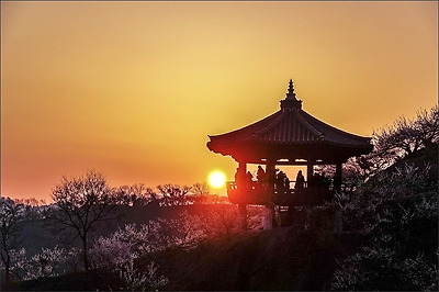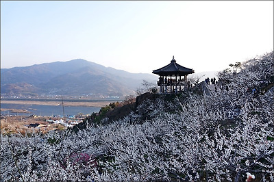 매실농원의 풍경에 빠짐없이 등장하는 이 팔각정을 포인트 삼아