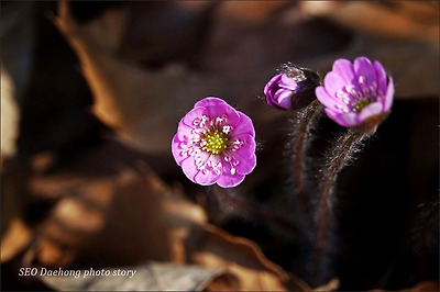 노루귀를 찍을 때, 대부분 노루귀 줄기의 솜털에만 촛점을
