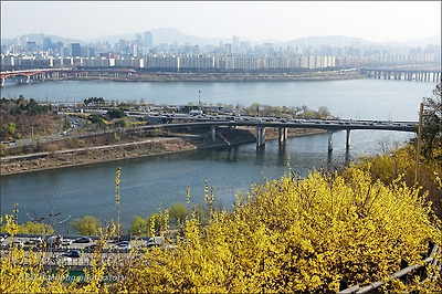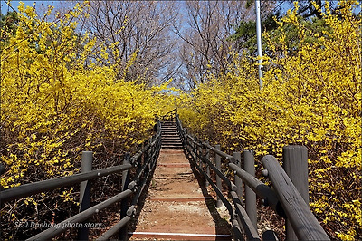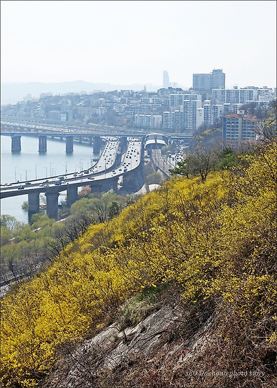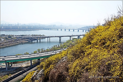 그 응봉산의 개나리가 있는 풍경입니다.