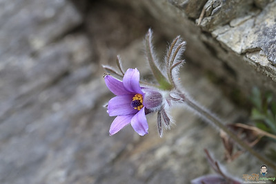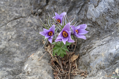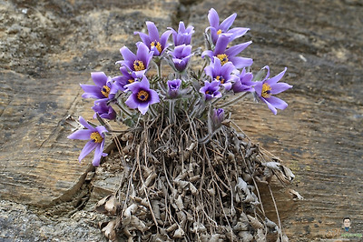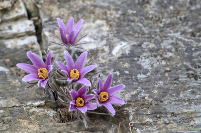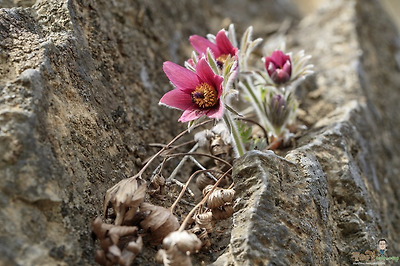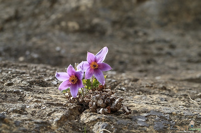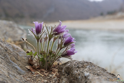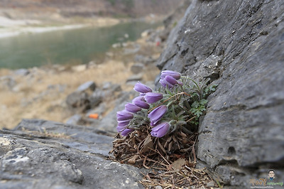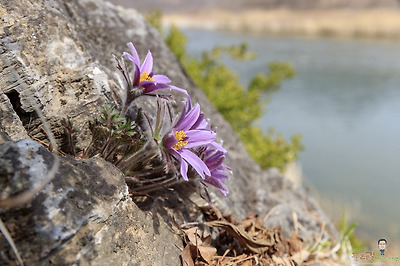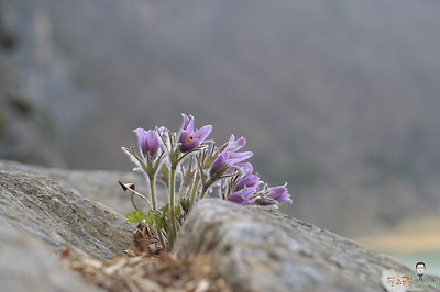 동강 옆 바위틈에서 자라는 동강 할미꽃
