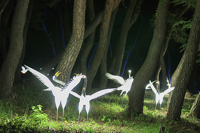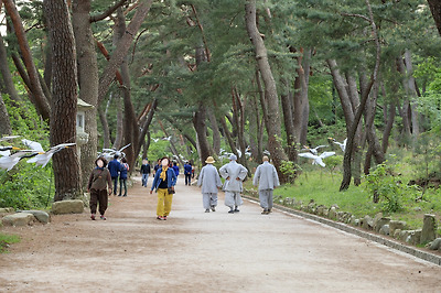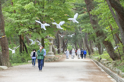 무풍한솔 길에 학등을 만들어 두어 마치 학이 날아다니는 것 같아 보입니다.