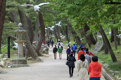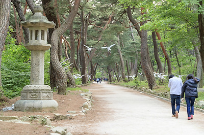 통도사 입구 무풍한솔 길을 따라 걷는 사람들이 참 많답니다.