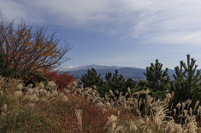 저 멀리 한라산 정상에는 하얀 눈이 쌓여있고 아래는 단풍이 곱게 물든 모습이 장관입니다.