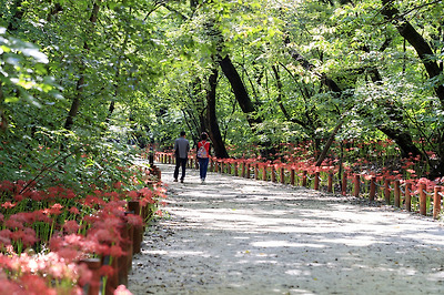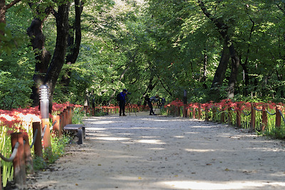 함양 상림공원에 꽃무릇이 필때는 많은 사람들이 찾는 곳이다.