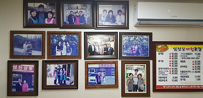 자리를 잡고 보니 섬진강횟집 / 섬진강재첩횟집에 눈에 익은 사람들이 제법 왔다 갔는지 사진들이 붙어있다.