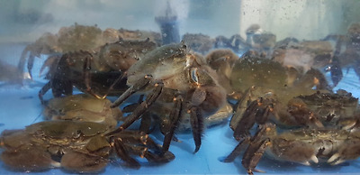 수족관에 나를 위해 대기 중인 참게들이다.